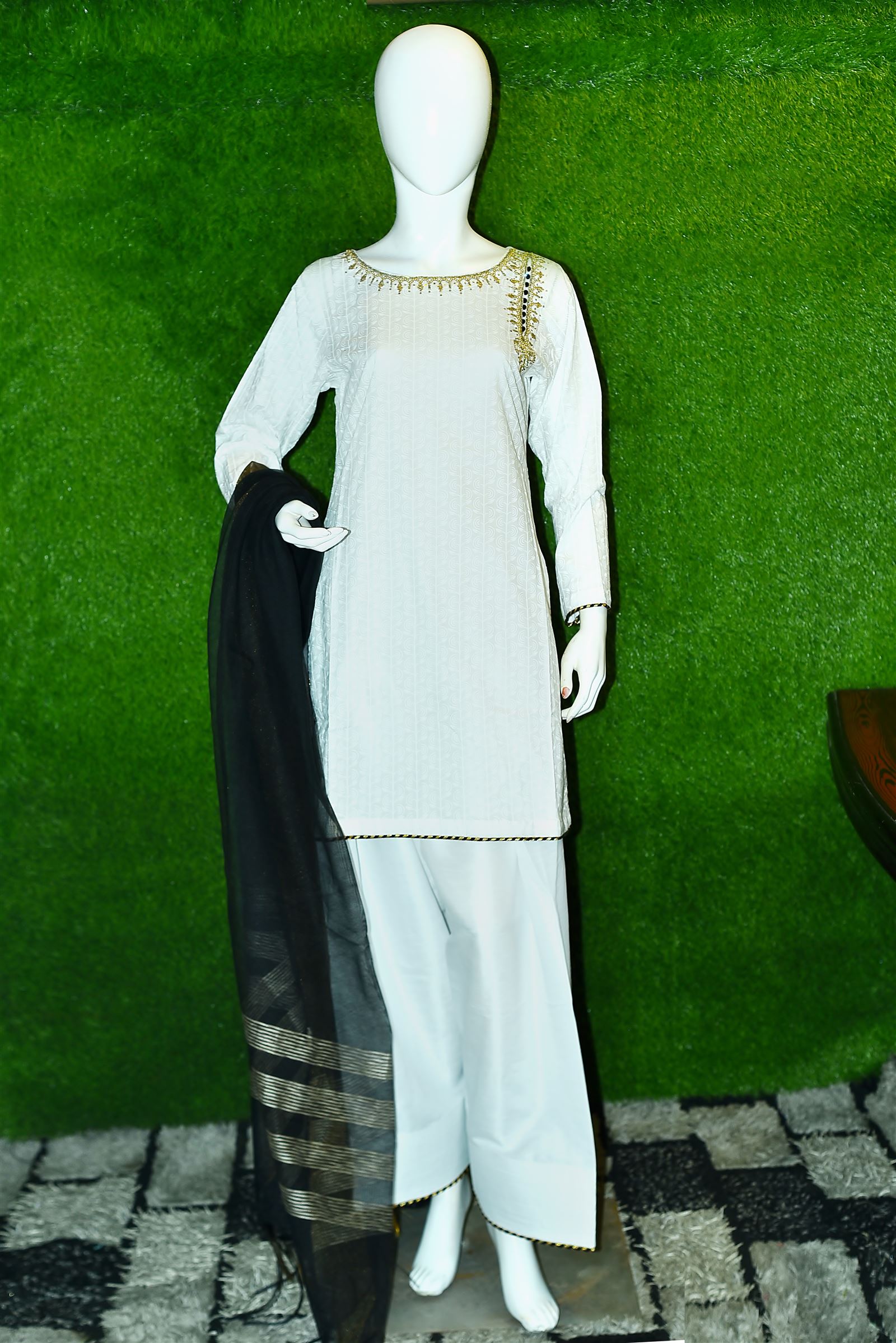 Self Jacquard Embroidered Lawn 3 Piece Set