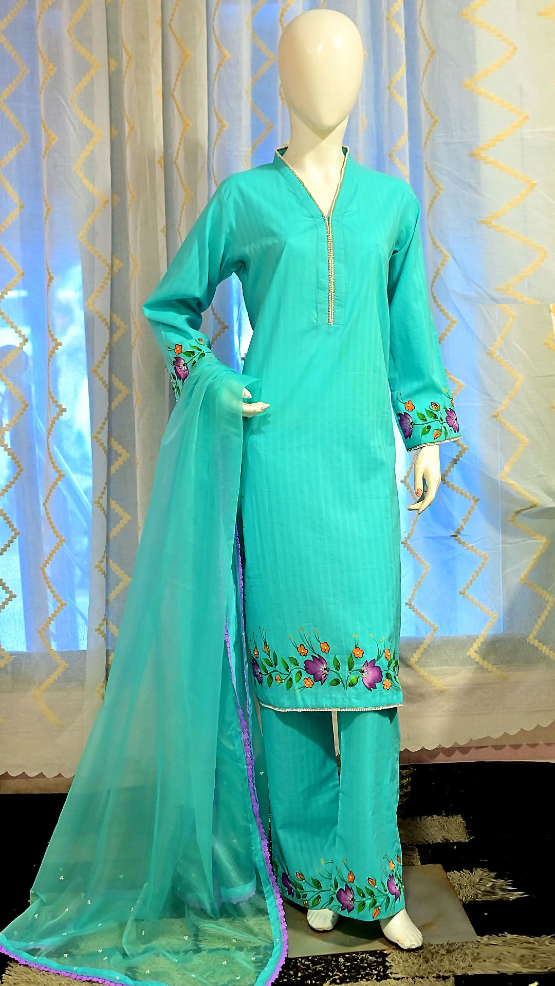 / Self Jacquard Lawn Embroidered Suit